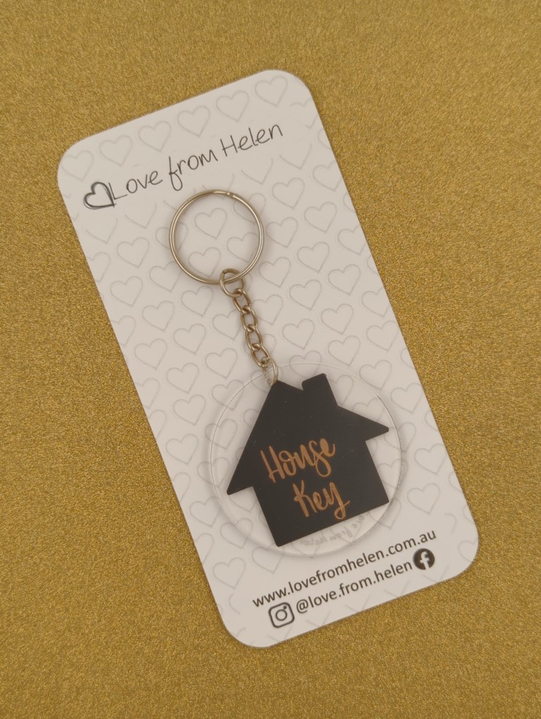 The small tag (5cm), is perfect for spare house key or additional keys for kids or the lockbox. It features the silhouette of a house, and can be personalised.