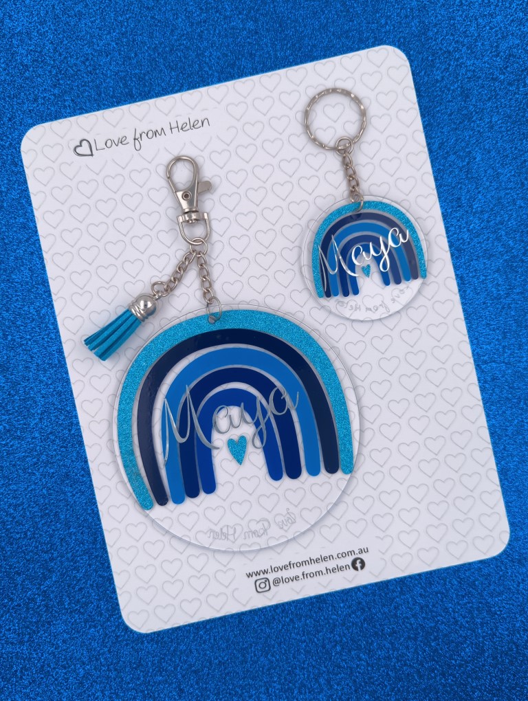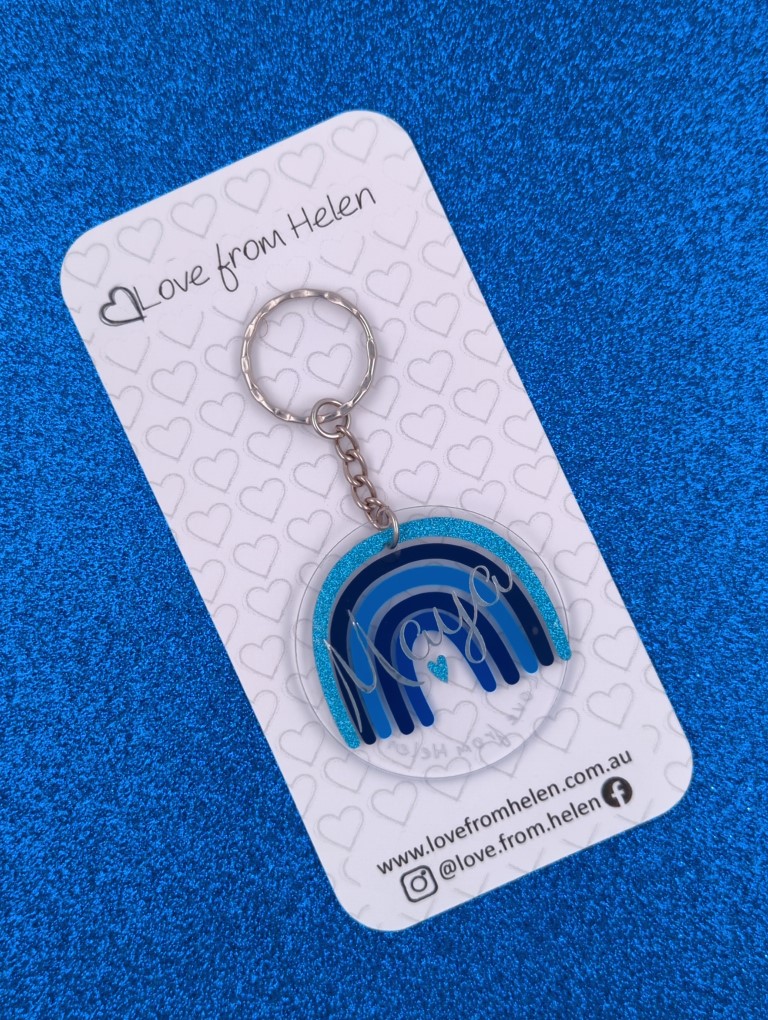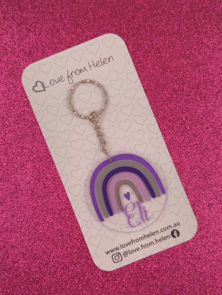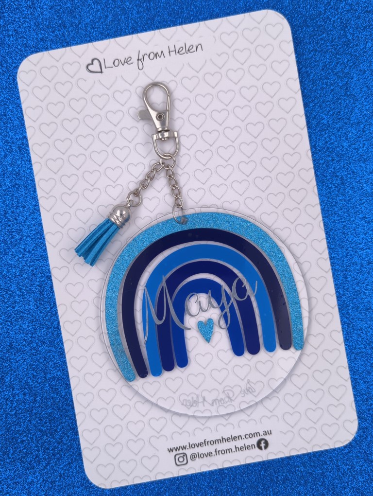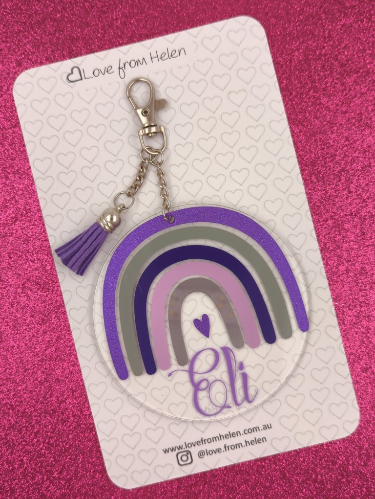 The small tag is perfect for lunch bags, pencil cases, makeup bags and more. It features a split ring and can be customised with or without the length of chain.