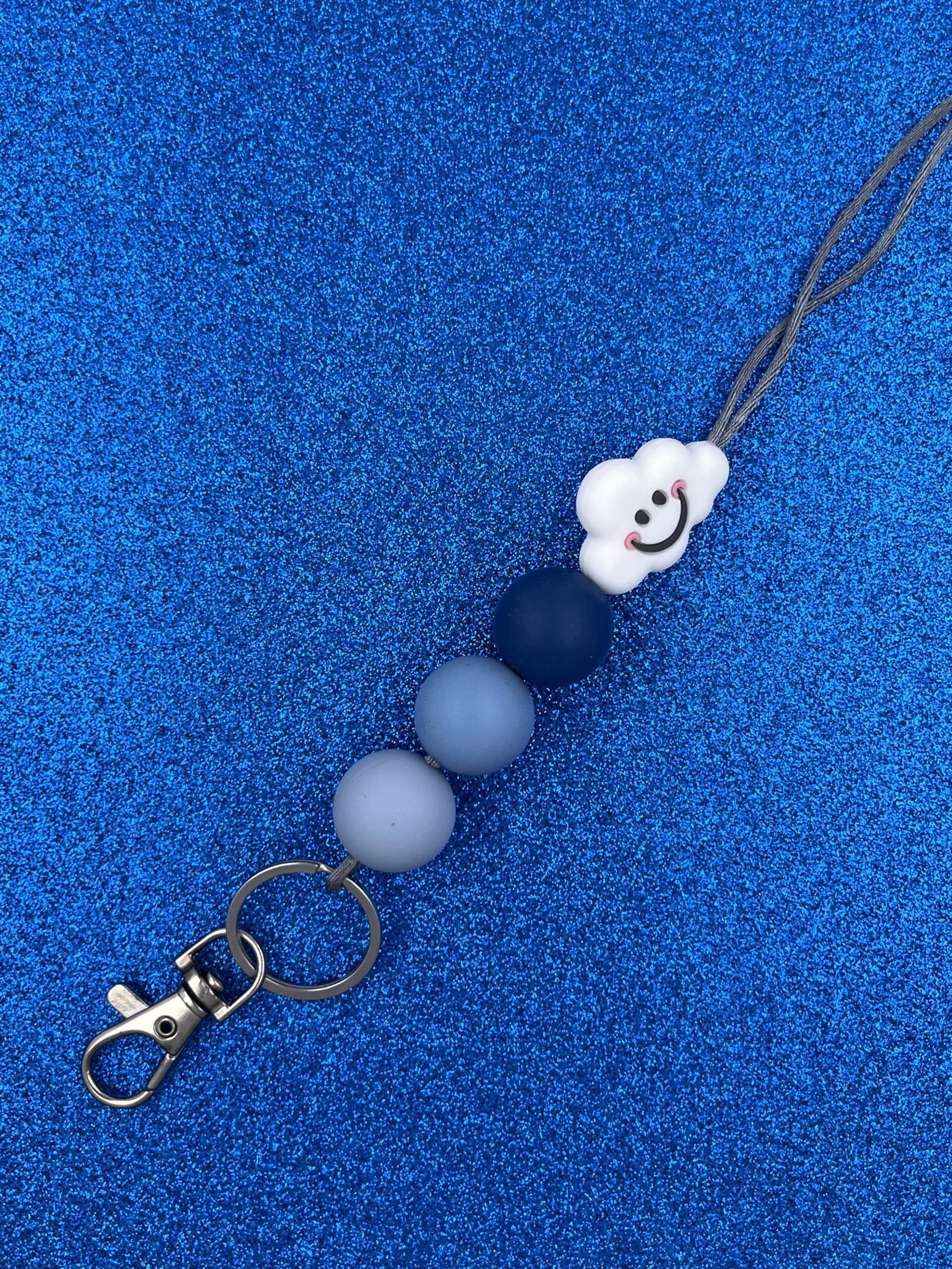 Handmade lanyard with beautiful shades of blue and white cloud beads.