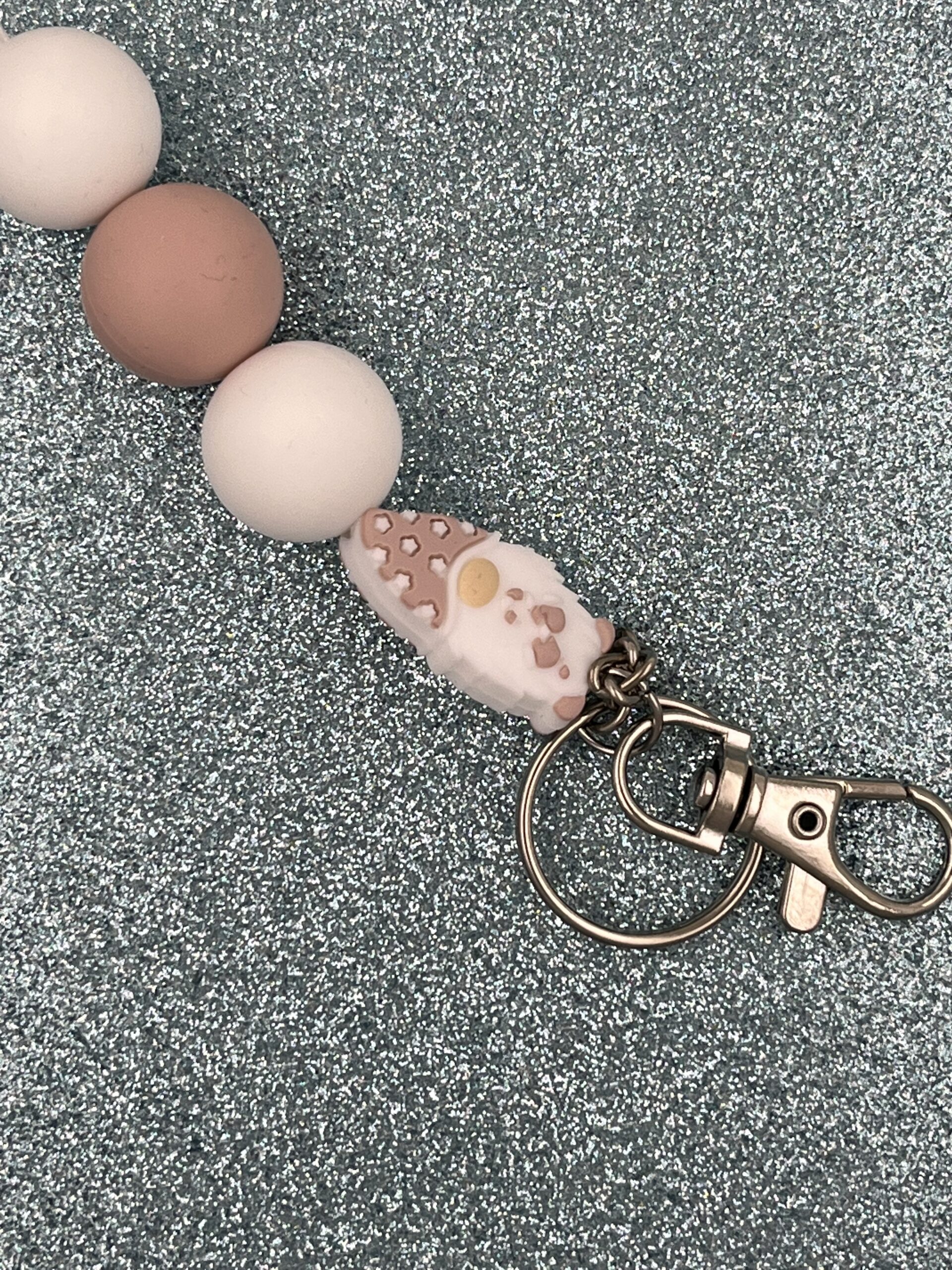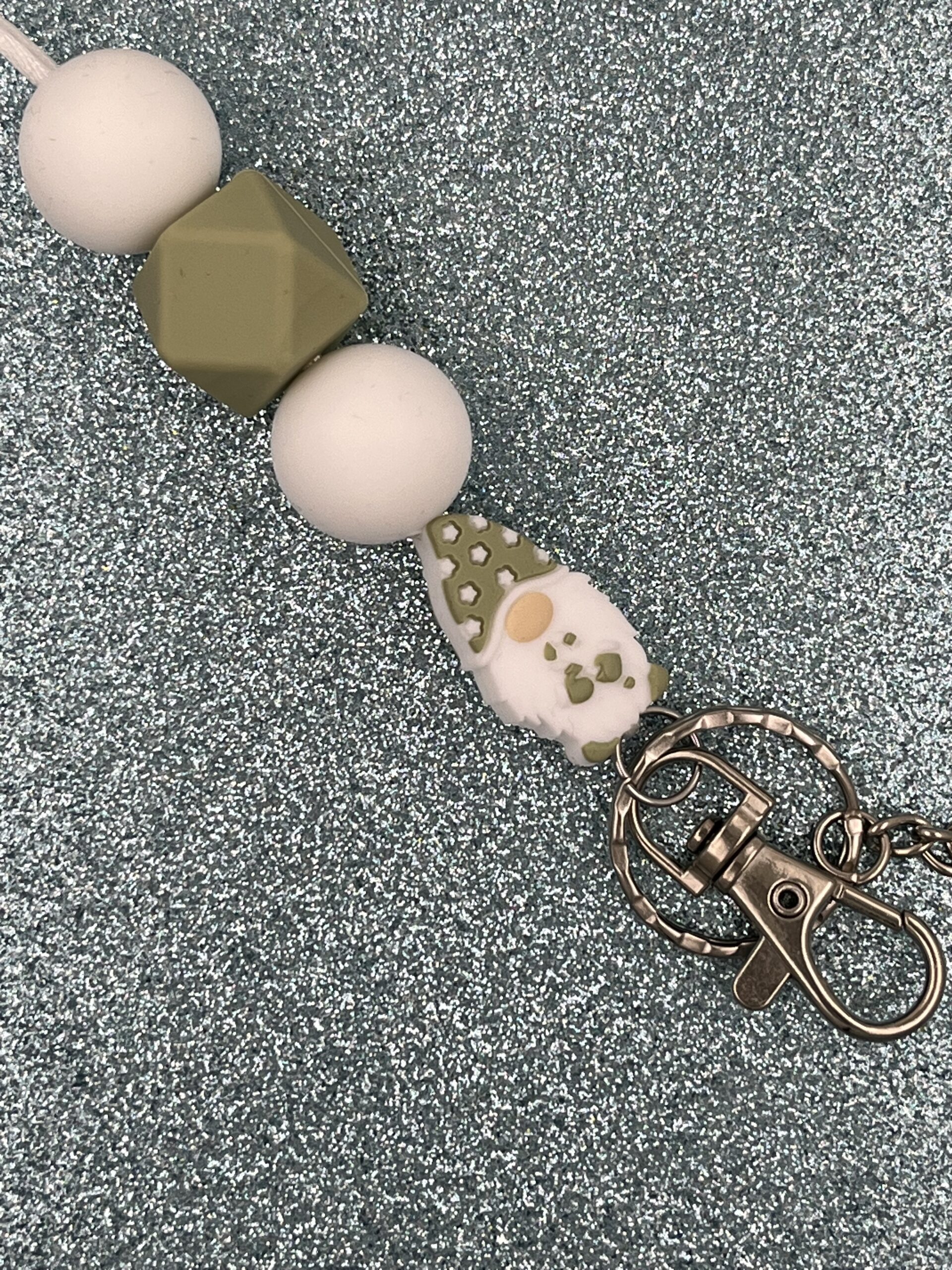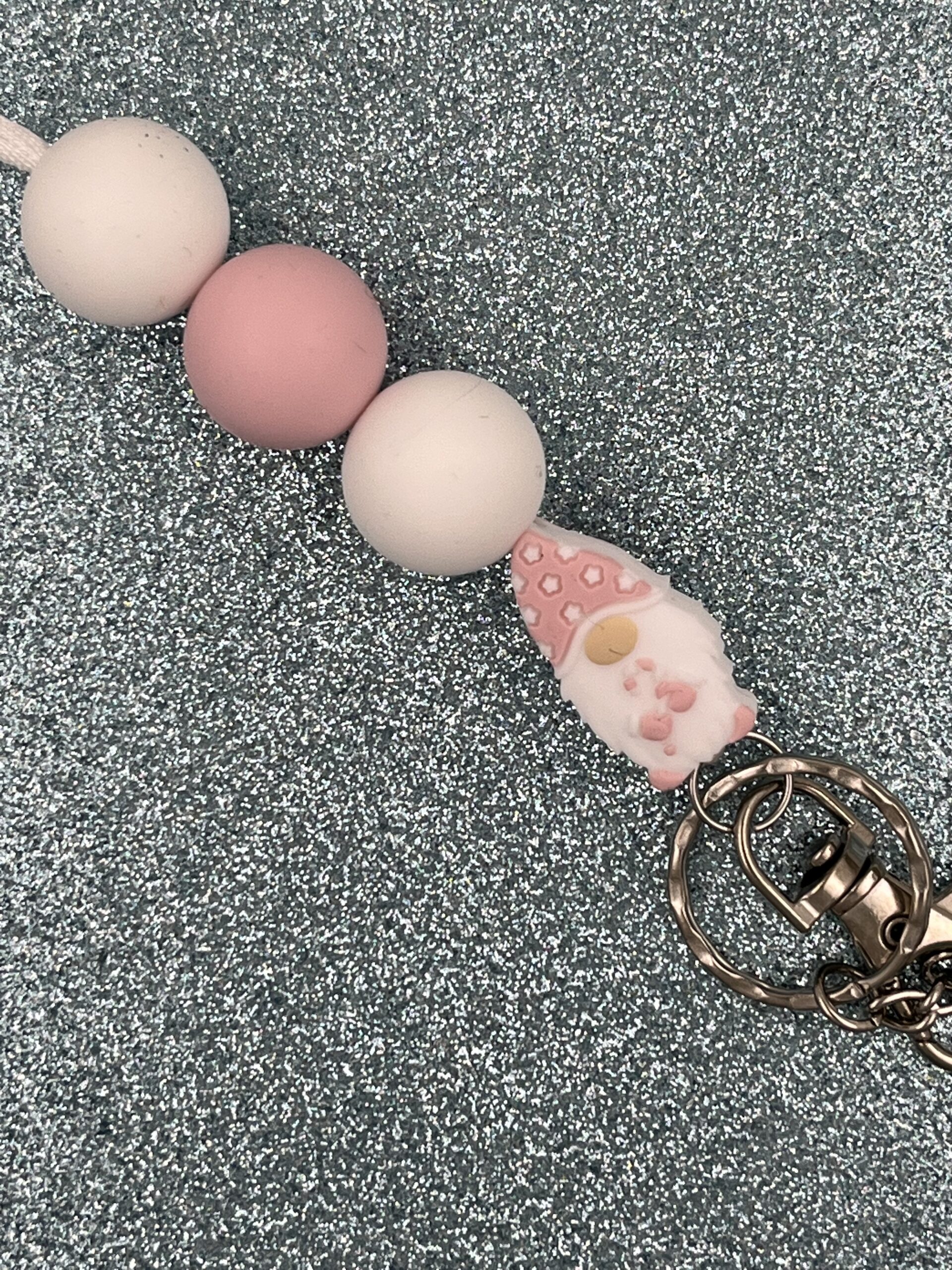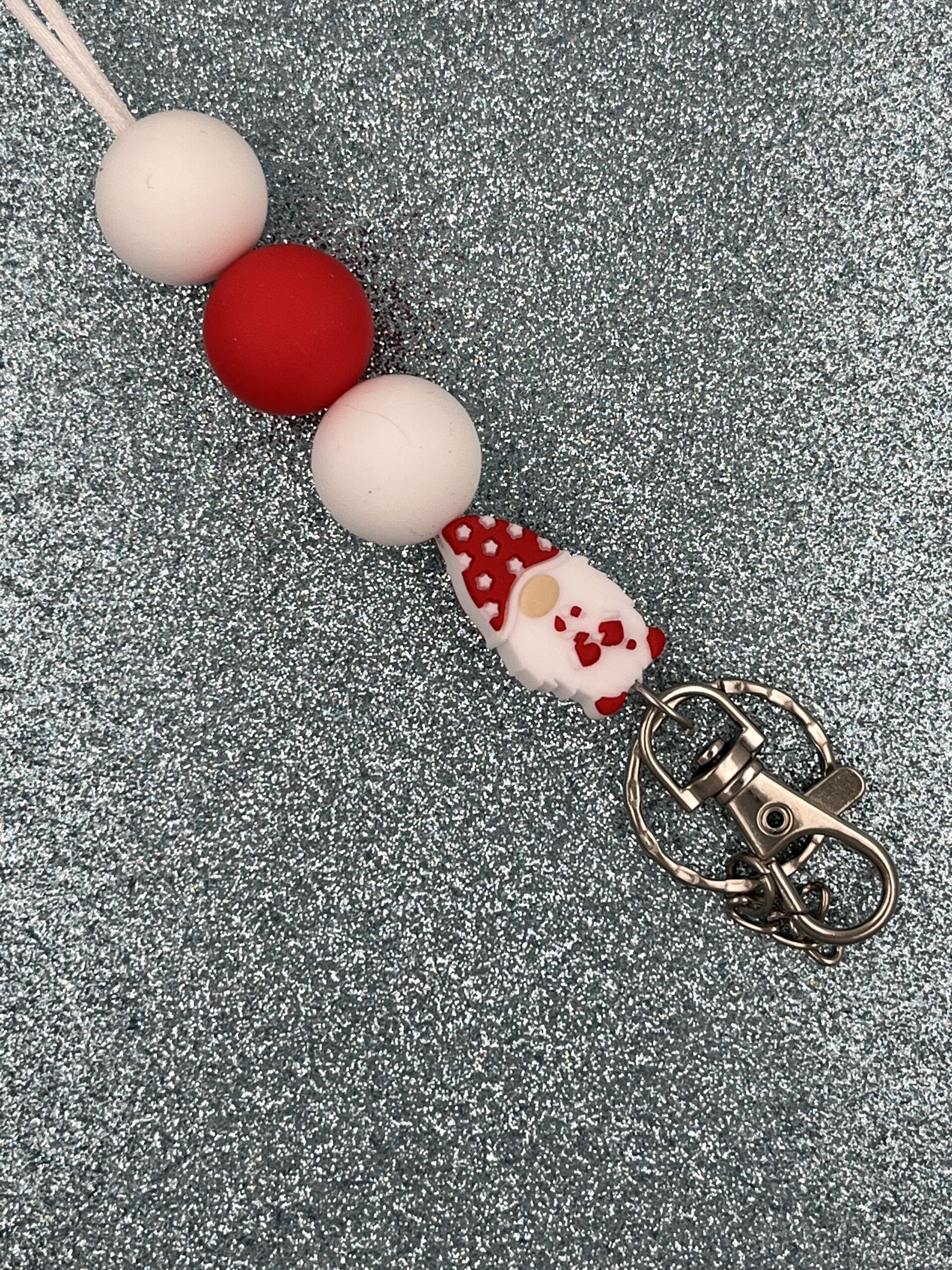 Handmade lanyard with a sweet Scandinavian gnome or Tomte feature bead, round white beads and round feature colour bead to match the gnome.