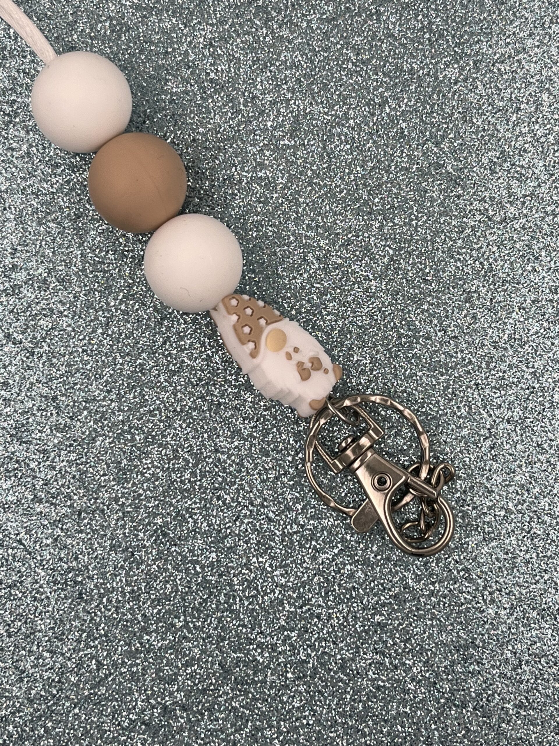 The Scandignomian lanyard features silicone beads, a breakaway clasp, white nylon cord, clip, split ring and a personalised tag.